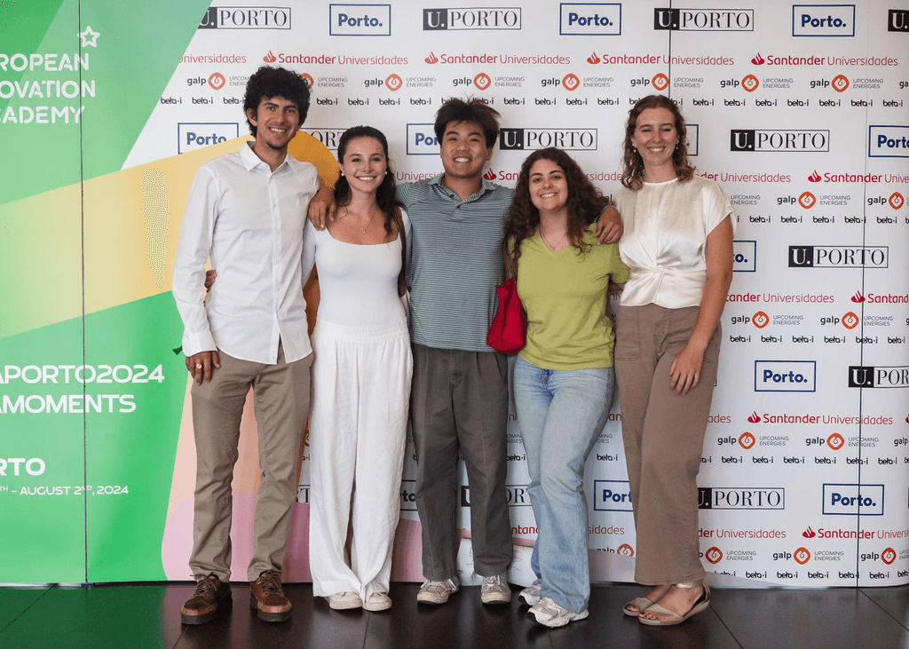 We are Toby Lamorte, Nashla Estefan, Henry Ngo, Beatriz Tomas, and Megan Dewing. We are 5 undergraduate students from UC Berkley, Villanova University, University of Coimbra and Grove City College, currently studying abroad in Porto, Portugal through the European Innovation Academy!